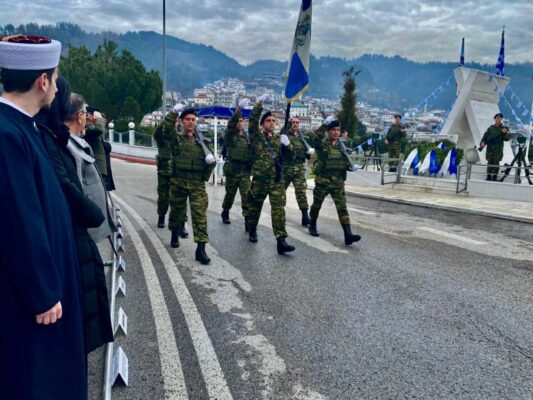 29 Mart 2026 Pazar, Ksanti Müftü Naibi Sayın Süheyyip İmam, Trakya Yüksek Askeri Komutanlığı Komutanı Korgeneral Sayın P. Kavidopulos’un daveti üzerine, Ehinos’taki anıtta gerçekleştirilen Ohiro (Kale) Muharebesi’nin yıldönümü kapsamında düzenlenen anma törenine katıldı.