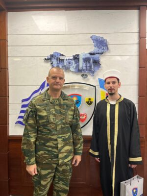 2 Aralık 2025 Salı, Ksanti Müftü Naibi Sayın Suheyp İmam, Trakya Yüksek Askeri Komutanlığı Komutanı Korgeneral Sayın Panagiotis Kavidopoulos’a Ksanti’deki komutanlık karargahında nezaket ziyaretinde bulundu.